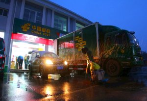 江苏:南京市分公司千余名“快递小哥”暴雨中坚守