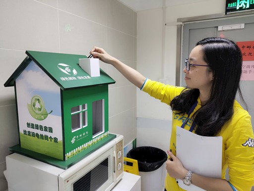 图为中邮保险湖北分公司开展的“废旧电池之家”活动。 □由保昌 摄影报道