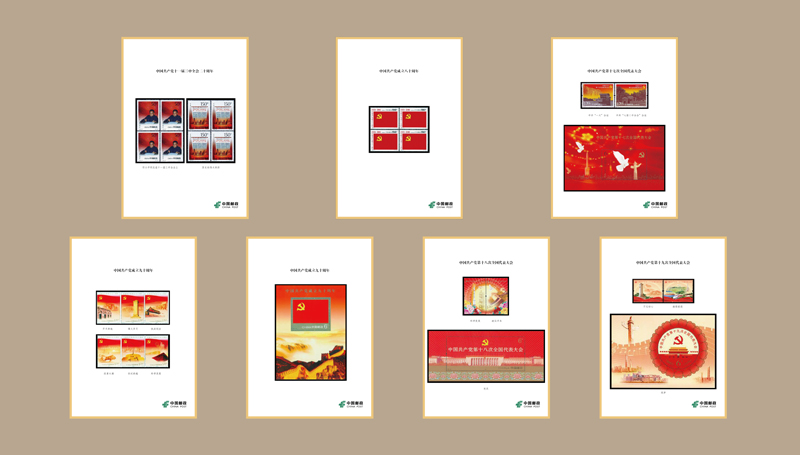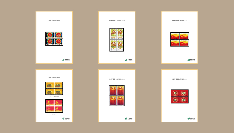 第一展柜展示的是1981年到1997年发行的建党题材邮票。在这里我们看到的是中国共产党第十二次、第十三次、第十四次、第十五次全国代表大会纪念邮票和中国共产党成立六十周年、七十周年纪念邮票。