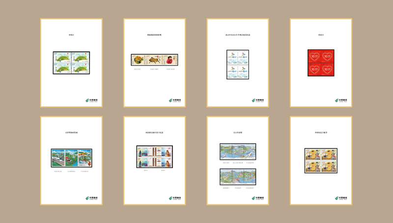 第八展柜展示了《图说我们的价值观》《扶贫日》《京津冀协同发展》《河北雄安新区设立纪念》《长江经济带》《中国农民丰收节》等邮票,逐一展现了十八大以来,特别是十九大以来的新战略、新发展的全景。