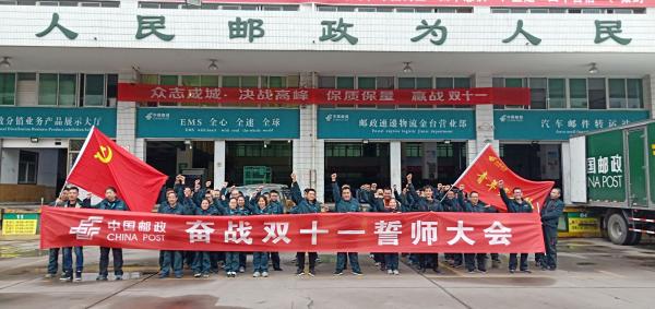 11月10日,宝鸡市寄递事业部在邮区中心局召开“双11”旺季生产誓师大会,以进一步发挥基层党组织的战斗堡垒和党员的先锋模范作用,全力以赴打赢“双11”攻坚战。