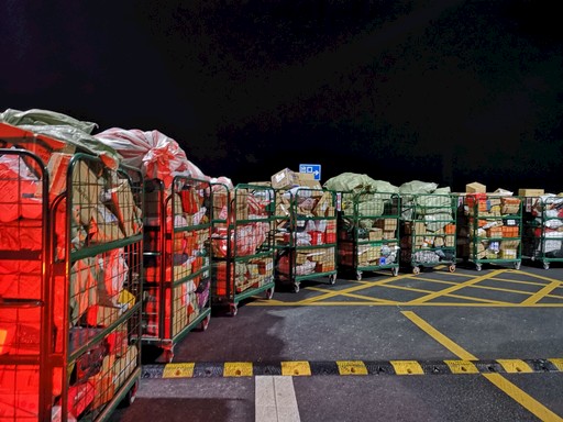 “双11”期间,湖北省十堰市邮政分公司邮件处理中心日处理峰值达3万件,凌晨时分,码放整齐的邮件正等候处理。□黎红琴 摄