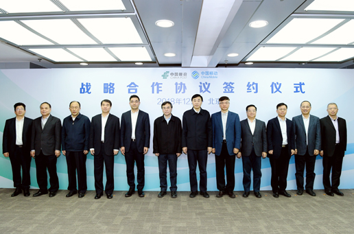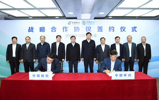12月14日,中国邮政集团公司与中国移动通信集团有限公司签署战略合作协议。集团公司董事长、党组书记刘爱力,集团公司总经理张金良,中国移动董事长、党组书记尚冰,总裁李跃出席签约仪式。张金良、李跃代表双方签署协议。双方在京领导班子成员见证签约。