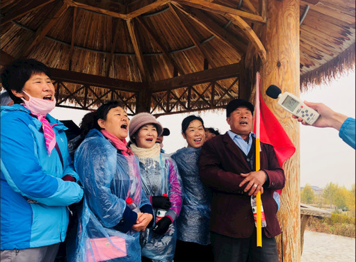 宁夏分公司健步走活动中的“歌声嘹亮”环节。