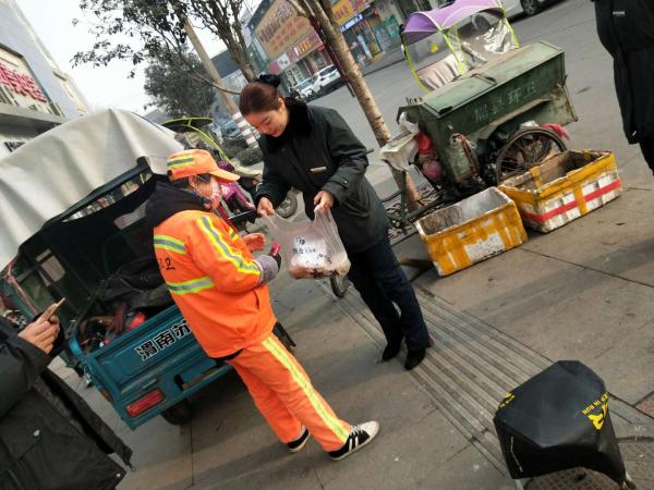 图为宝鸡市眉县分公司各网点组织人员走上街头为保洁人员送上属于邮政的关怀。