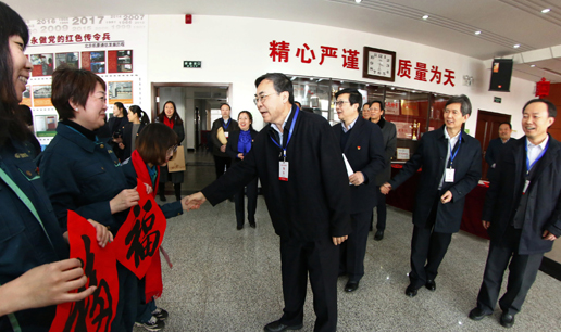 刘爱力观看北京机要通信局员工书写“福”字,为大家送上新春祝福