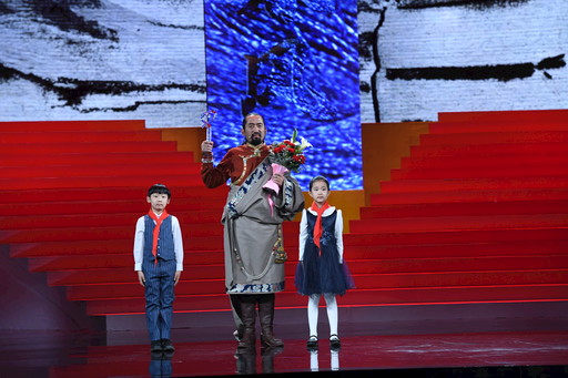 其美多吉举起“2018年度感动中国人物”奖杯。记者 朱正义 摄