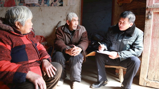 今年1月,殷勇到泗洪县归仁镇村庄走访调研独生子女家庭养老问题。张成 摄