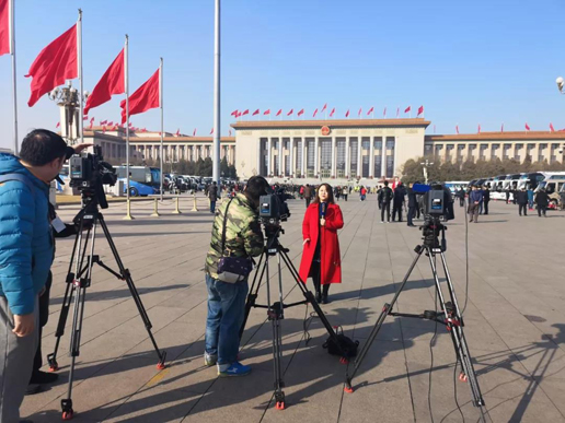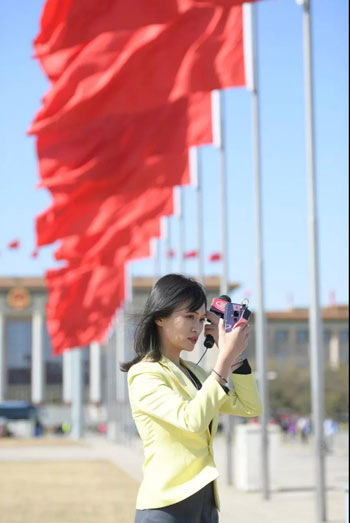 一说起添彩,还有今天报道会议开幕的女主持人、女记者,站在天安门广场上,口播新闻,一遍一遍,只为了以最佳的姿态、最好的面貌出现在观众面前。