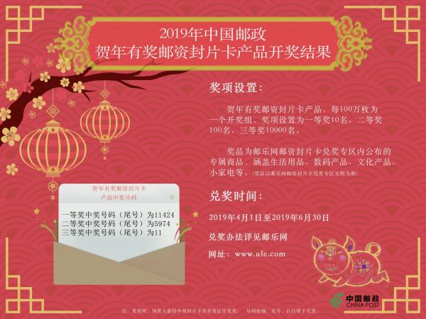2019年中国邮政贺年有奖邮资封片卡产品开奖结果