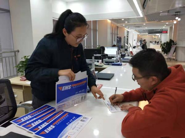 日前,西安市寄递事业部纺织城分公司与灞桥区新市民中心签订合作协议,入驻灞桥区新市民中心34号服务窗口。今年1月,灞桥区新市民中心成立,设立了近80个服务窗口,为群众提供近百项政务服务。EMS作为唯一的快递企业入驻新市民中心,嵌入政府公共服务体系,为各政务服务窗口和前来办理业务的市民提供便捷的邮政快递服务。图为EMS工作人员在为市民办理相关邮寄业务。