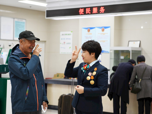 4月15日,《经济日报》《工人日报》等中央媒体来到北京东四邮局,对有着百年历史和60多年亲情服务传统的品牌局所进行采访。东四邮局以服务起家,靠服务看家,送服务到家,一直把服务社会作为永恒主题,始终把服务人民放在第一位,形成了“用户是亲人”服务理念下的亲情服务文化,被誉为京城邮政服务的“亲情驿站”、首都银街上的“亲情信使”。图为采访当天,全国劳动模范、东四邮局局长助理陈兰颖为听力障碍用户提供手语服务。 □记者 李旭昌 摄影报道