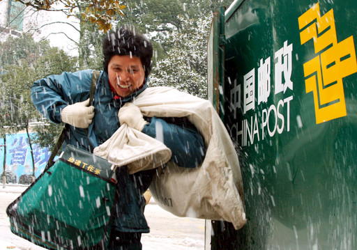 无论任何天气条件,湖南邮政投递员都是按时将邮件、报刊投递到户。