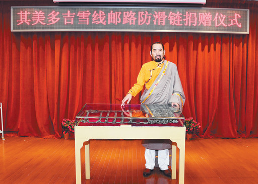 7月9日,其美多吉雪线邮路防滑链捐赠仪式在中国邮政邮票博物馆举行。“时代楷模”其美多吉介绍说,防滑链是保障雪线邮路邮车驾驶员安全的主要工具,是翻雀儿山、过冰雪路的必需品。防滑链见证了其美多吉三十年如一日用青春和生命为民服务、用鲜血和汗水忠诚履职的奋斗历程,见证了邮政人服务政治稳定、民族团结、经济发展、社会进步、人民幸福的职责使命,见证了艰苦奋斗、勇于创新、不畏艰险、默默奉献的交通精神。其美多吉先进事迹报告团成员参加了捐赠仪式。