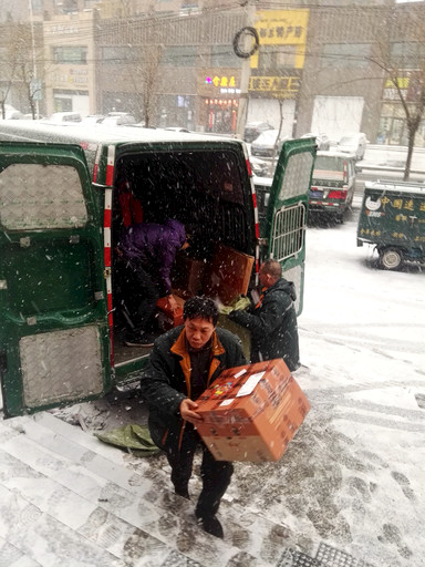 不管天气多么恶劣,投递员都坚持送件上门。赵御博 摄