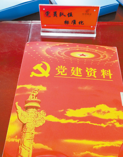 肇源县分公司党委坚持党建引领,实行组织设置科学化、工作运行高效化、组织生活规范化、党员队伍标准化、基础保障坚实化、品牌建设特色化“六位一体”的管理方式,加强党员队伍建设。图为专门设计的党建资料活页夹。宁国富 摄