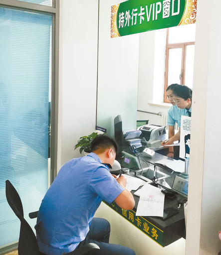 东郊营业所靠服务开拓市场,“来的都是客,服务不打折”,专门开设了“持外行卡VIP窗口”。宁国富 摄