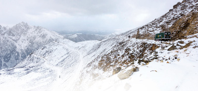 但是,雀儿山给了他人生第一次重大考验——因为大雪,他们被堵在山上。