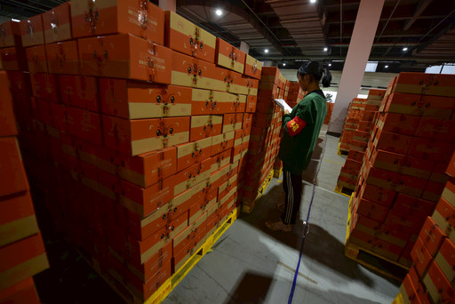 11月11日凌晨5点,江苏省南京综合保税区,南京市邮政寄递事业部“双11”生产旺季期间专为电商大客户租赁的近4000平方米前置仓站台前,一辆9米多长的大货车停靠在垛口,一箱箱贴有邮政快递包裹面单的“三只松鼠”邮件正在装车。