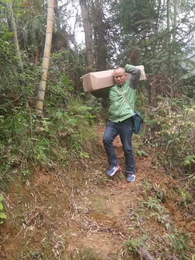 杨建华翻山越岭投递包裹。