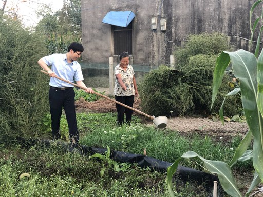 胡博为当地农户灌溉菜地,将暖心服务送至田间地头。