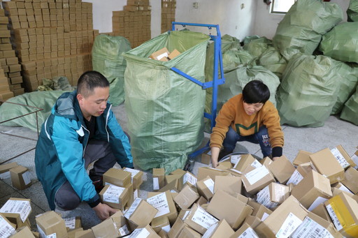 在混合收寄处,8名工作人员一字排开,根据系统提示迅速将揽收回来的包裹,按照省际、省内、长三角3个区域放置到对应的传送带上,他们动作娴熟,争分夺秒。伴随着“啪啪啪”的包裹落带声,堆成小山似的包裹很快被运送到分拣处进行细分。“‘双11’前,我们为这8台混合收寄设备做了一次全面‘体检’,确保设备在旺季期间能够发挥最大功效。”武义县寄递事业部副总经理任霞说。混合收寄系统上线后,邮件收寄处理效率从以前的每小时1300件提高到2800件,为投递环节赢得了宝贵的时间。