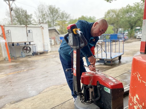 “老陈,你看下,这个叉车能不能修好?”“我瞅瞅……没问题,放这儿吧!”