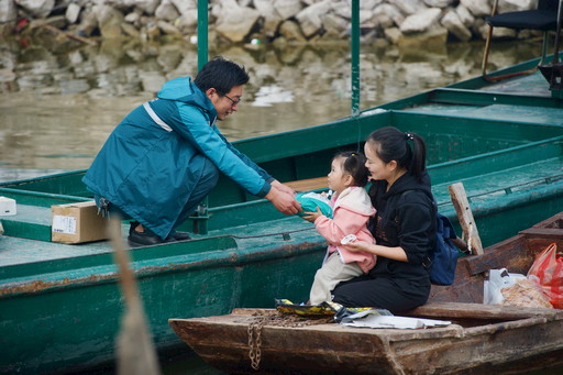 一天投递工作结束了,邮政船陪伴着王少朋缓缓驶回码头。