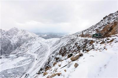 其美多吉与同事驾车行驶在雪线邮路上。
