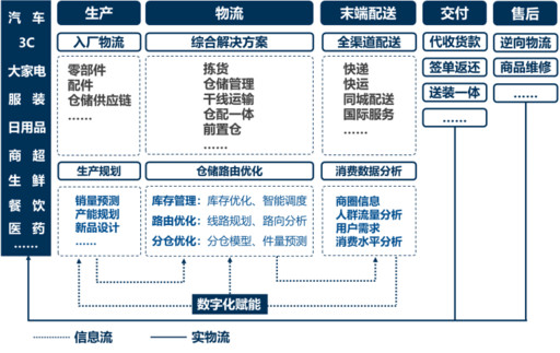 赋能源头客户打造服务生态。主流快递企业聚焦汽车、3C、大家电等行业,不断拓展源头战略客户,面向生产、销售、仓干配、售后等环节提供数字化、综合化物流解决方案。菜鸟提供商品生产规划、销售到流通、配送的数智化供应链网络;京东物流搭建供应链产业平台实现数字化赋能产业供应链服务;顺丰数据灯塔为行业商户提供咨询、分析、营销、运营等服务。(见图10)