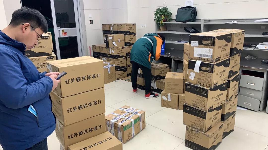 1月22日,常州市分公司鸣凰营投部主动对接某塑业科技公司时了解到,对方将有6万只口罩发往全国各地(70%发往武汉)。时间紧,客户急,常州市分公司紧急协调组织,确保耗材到位,并全力协调人员帮助客户集中包装,形成近3000个标件,确保当天赶发。郑陆营投部揽投员利用休息日上门与药企客户对接,揽收14箱温度计。之后一周,该企业还将连续有寄件需求。其他营投部通过组织摸排,也陆续有医药企业提出寄递相关防疫药物、用品等需求。