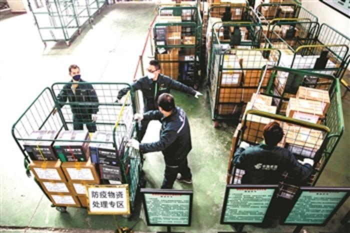 北京邮区中心局作为邮件集散地和分拣处理运输中心,为了让捐赠物资快速寄达武汉,对防疫物资采取专人接收、优先处理的方案,并开通绿色通道,保障捐赠物资全程单独处理,内部处理环节提速两个多小时。