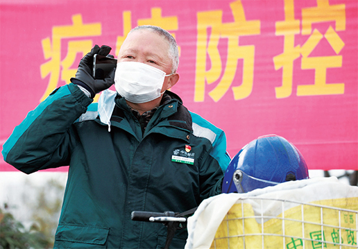 “我的兵龄加上工龄有42年了,从未遇到过如此严重的疫情,作为一名老党员更知孰轻孰重,更应在这场没有硝烟的战斗中守好阵地。”出生于1960年4月已临近退休的江苏省金湖县邮政分公司城区投递员马玉龙,于1月26日得知家乡打响了新型冠状病毒肺炎疫情阻击战,毅然放弃了首次春节休长假与家人尽兴团圆的计划,辞别了在苏州市安家的妻儿,回到服务岗位并对单位领导给出坚持工作的理由。