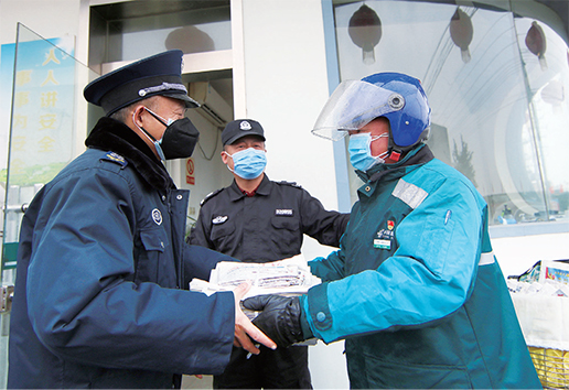 “不扎堆,莫串门,疫病传播不认人;戴口罩,勤洗手,科学防守太重要;万众一心除疫患,众志成城送瘟神……”马玉龙在立足岗位做好服务之余,还热情收集正能量且朗朗上口的疫情防控宣传语,利用班余时间志愿参与社区防疫劝导宣传。