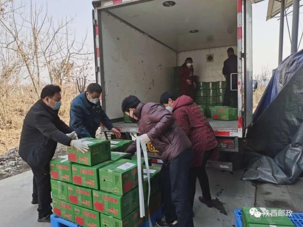 昨日的渭南韩城市,天气阴沉,但当地芝阳镇寿寺村农产品中心(果库)、金城办新彭村共裕专业合作社(果库)却是一派繁忙景象。果库工作人员和邮政工作人员一同将一箱箱的苹果装车,再通过邮政遍布全国的邮运网络发至全国各地的消费者。