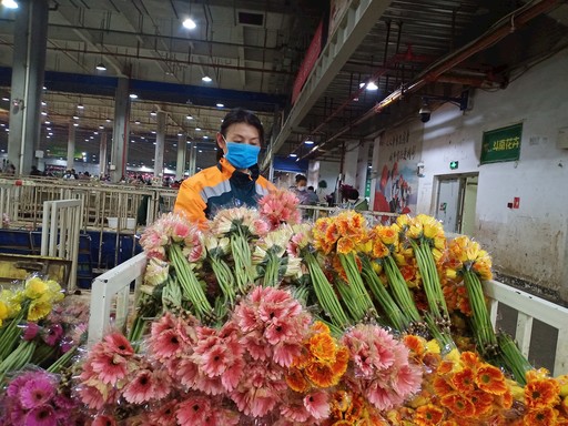 为确保亚洲最大鲜切花市场斗南花卉市场内的鲜花以最好的状态出滇、以最快的速度传递爱与温暖,昆明邮政人坚守好每一个岗位,近期,日均处理量达两万件,每天奋战至凌晨两点以全力保障鲜花出口时限。图为斗南鲜花团队领创人杨晓寒正在揽收鲜花邮件。