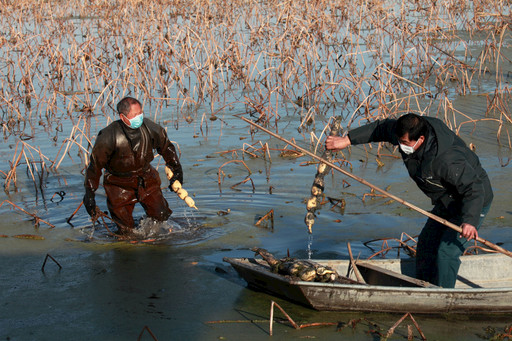 为确保安全,我一方面邀请无外出接触史的本村藕农劳作;另一方面为避免藕农聚集,采取分田块、划间隔釆藕的方法。同时,为负责荷藕装车的人员配发口罩,凡进入农场的陌生人均要进行登记、测量体温,车辆进出均予以消毒。