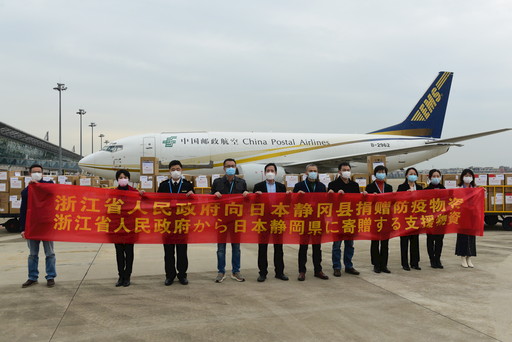 3月12日11时,浙江省政府向日本和韩国捐赠防疫物资的交接启运仪式在义乌机场举行。浙江省政府外事办公室、省经信厅将物资交付浙江省邮政分公司承运。此次捐赠物资包含了口罩、防护服、护目镜等共计近千箱防疫物资,其中捐赠日本的物资将由中国邮政“义乌—大阪”邮航货运包机直航送达。自2月6日浙江省分公司开通“义乌—大阪”往返邮航货运包机海外捐赠“绿色通道”以来,已完成多批次防疫物资的运输工作,使义乌成为防疫物资捐赠和运输的一个重要口岸。□厉楠 摄影报道