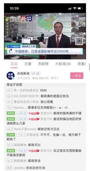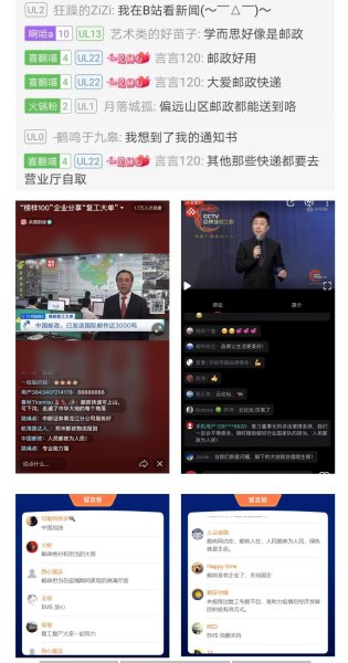 在直播中中国邮政的抗疫答卷、复工大单得到了网友的大赞