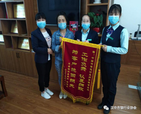 郑某为表示感谢于2020年5月11日再次来到宁强县羌州南路营业所,为网点送来了“工作负责、认真细致、为客户挽回损失”的锦旗。
