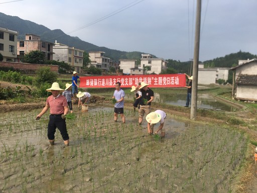 正是插秧时节,邮储银行江西省遂川县支行党支部驻村干部在走访过程中,得知新寨村68岁无儿无女的建档立卡贫困户谢昌校因身体不适无法及时插秧的情况后,立即向单位党支部书记进行了汇报。5月19日,遂川县支行党支部组织党员干部一行10余人来到谢昌校家的农田,开展“助贫插秧”主题党日活动,帮助贫困群众解决实际困难,让田间地头成为党员教育的生动课堂。 □焦溱溱 罗斌 龙星 摄影报道