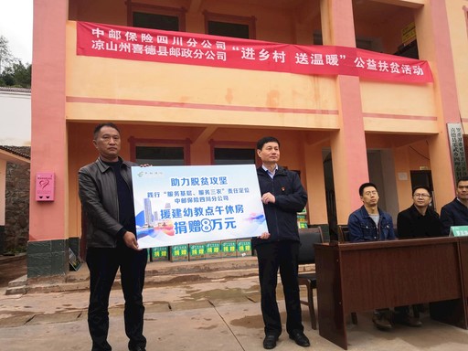 5月27~29日,中邮保险四川分公司携手凉山州邮政分公司、喜德县邮政分公司全面开展扶贫攻坚,组织“进乡村 送温暖”扶贫公益活动,为凉山州喜德县四呷布村、瓦古村村民赠送“中邮禄禄通团体定期寿险”共计2275万元,向米市镇瓦哈村、色普村的建档立卡贫困户赠送保险共计656万元,并为贫困户捐赠了近14万元的生活用品。