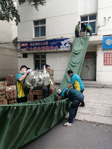 为做好校园包裹收寄工作,平房区分公司校园包裹项目组抽调100名员工进驻理工大学帮毕业生打包、收寄。为了解决学生公寓楼楼层高、邮件搬运困难的问题,员工们制作了一个盘运“神器”,利用滑道原理将校园包裹从二楼的寝室窗户输送到一楼,大大提升了盘运和装车速度。由于包裹量大,6月24日,员工们纷纷请缨通宵发运邮件,项目组最终制定了通宵发运攻坚方案。从24日17时起,两个攻坚组开始了端午夜战,一条条“绿色滑道”在校园里赛起了别样的龙舟,当晚共发运校园包裹近30吨,得到了理工大学师生的一致好评。□卜玉  摄影报道