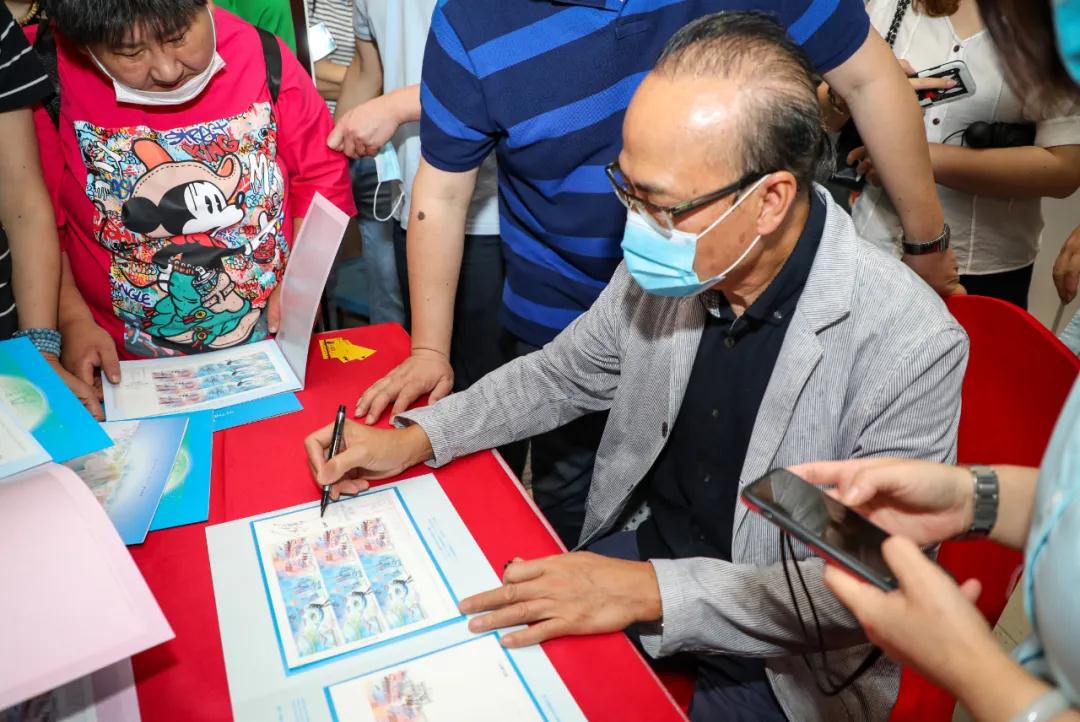 活动现场,邮票设计师韩秉华为广大上海邮迷签名留念,上海邮政提供邮品销售、加盖纪念戳等邮政服务。中国邮政集团有限公司邮政业务部总经理王志奇、上海市浦东新区区委宣传部部长唐劲松出席本次活动,并共同为邮票首日封揭幕。