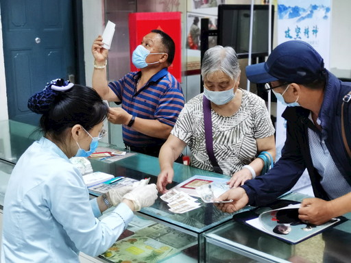 7月11日,江苏省徐州市淮东集邮营业厅内,邮迷正在购买《故宫博物院(二)》特种邮票。 □谢安吉 摄影报道
