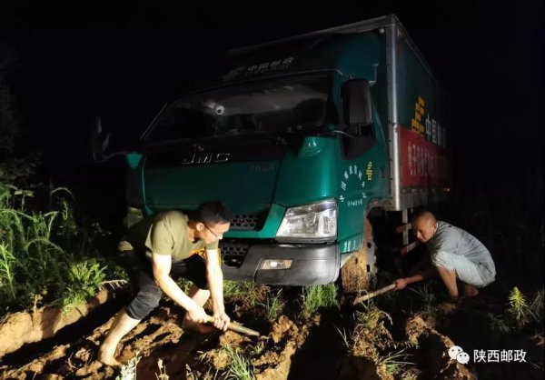 “玉合,我的邮车后轮陷到路边淤泥里出不来了......”7月25日下午6时多,汉中市寄递事业部邮运车队调度王玉合的电话里传来了驾驶员杨天龙焦急求救的声音。眼看着天色将晚且马上又要下大雨,王玉合在详细询问了现场情况和地理位置后,放下刚端起的饭碗,拿上铁锹、镐和废旧编织袋,驾着私家车一头扎进了夜色里。