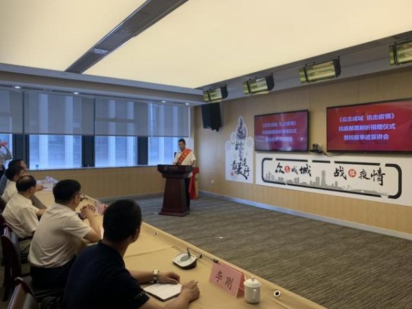8月20日上午,在杭州邮政分公司大楼的报告厅,由杭州市卫生健康委员会、杭州市市邮政管理局、杭州邮政分公司联合举办《众志成城 抗击疫情》邮折捐赠仪式。杭州邮政分公司向杭州援鄂抗疫医务工作者捐赠《众志成城 抗击疫情》邮票邮折共计958套;肖像邮票纪念张434张。此次捐赠给医务工作者的《众志成城 抗击疫情》纪念邮折,是中国邮政特别发行的邮票,用于铭记中国力量和中国精神,并将邮票发行收入捐献用于救灾抗疫。