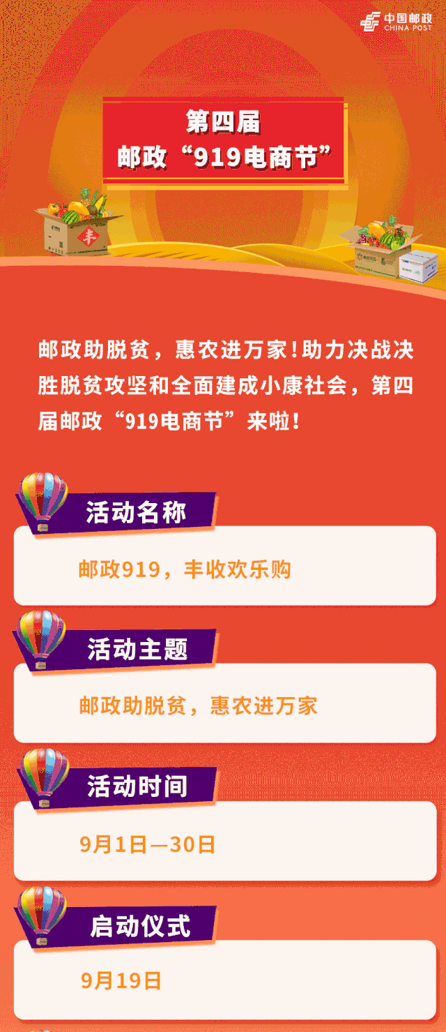 专题首页> > 中国邮政集团有限公司 > 个性化专题 > 邮政919 丰收欢乐购 > 走进919 > 这张图带你玩转“邮政919”!