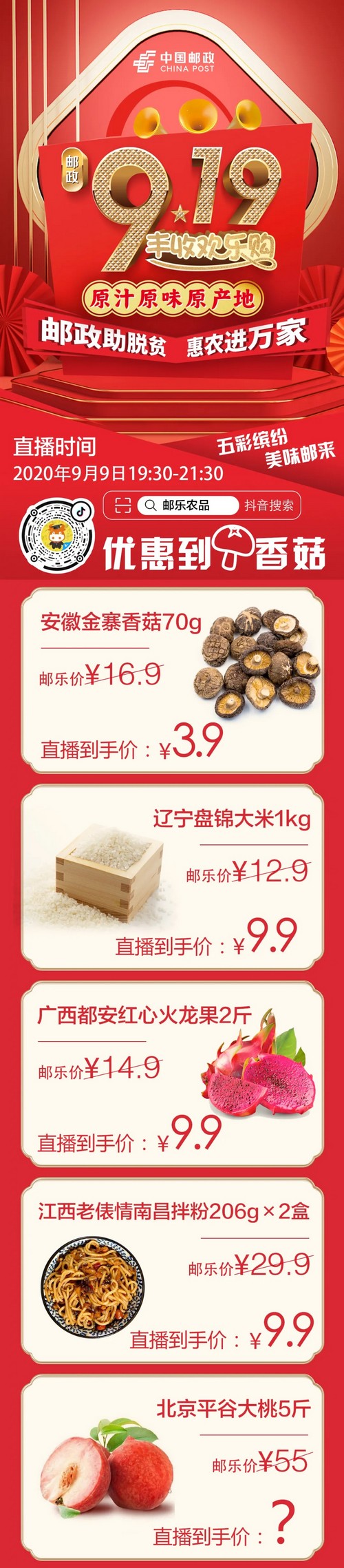 中国邮政919电商节首场预热直播来啦!