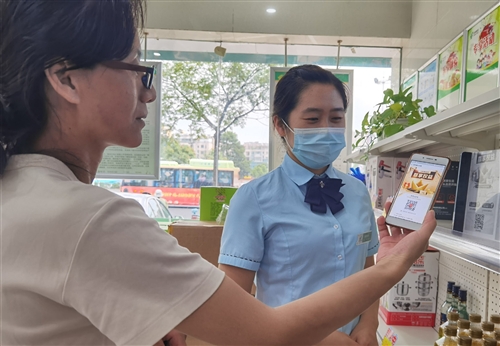 邮政员工引导客户扫码成为“邮特惠”会员并体验“一元购”。